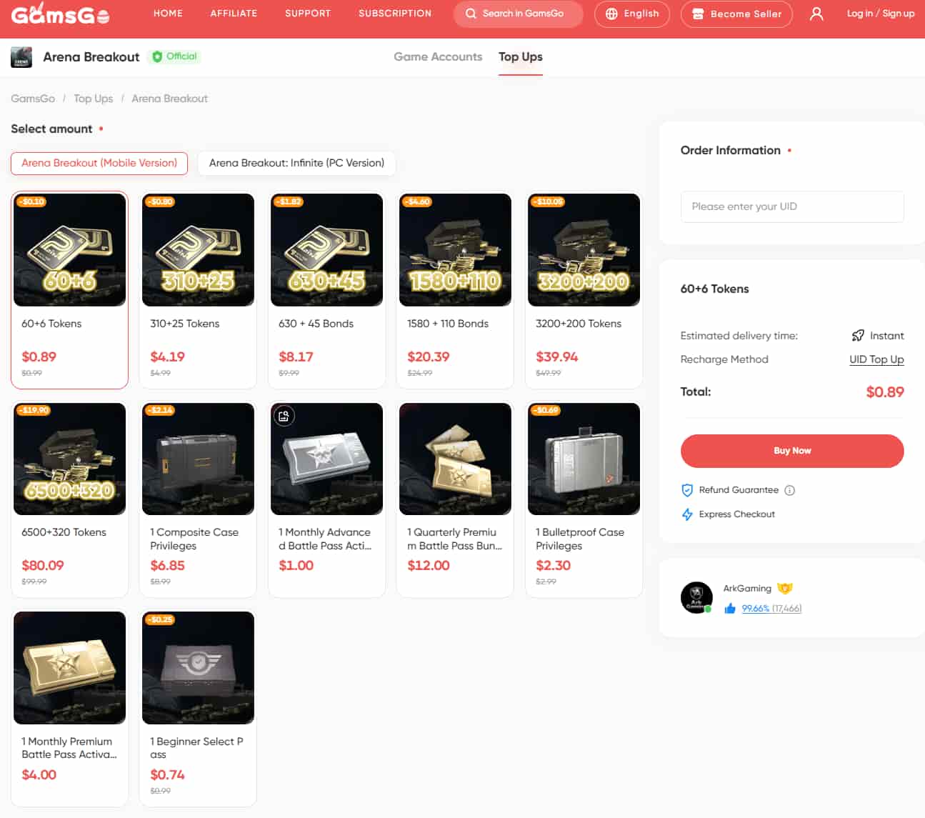 Above is the complete list of active Arena Breakout redeem codes as of April 2026. If you want to boost your progress even further, GamsGo offers a safe and convenient Arena Breakout top-up service, covering Bonds, Tokens, and other in-game resources.