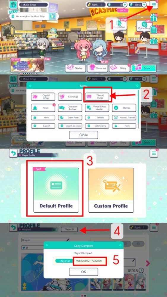 2. Gehe zu Titles & Profile > Default Profile > Player ID