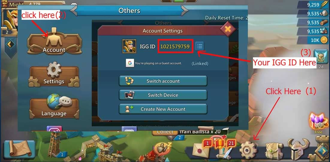 3. Wähle „Account“. Deine IGG ID wird dort angezeigt.