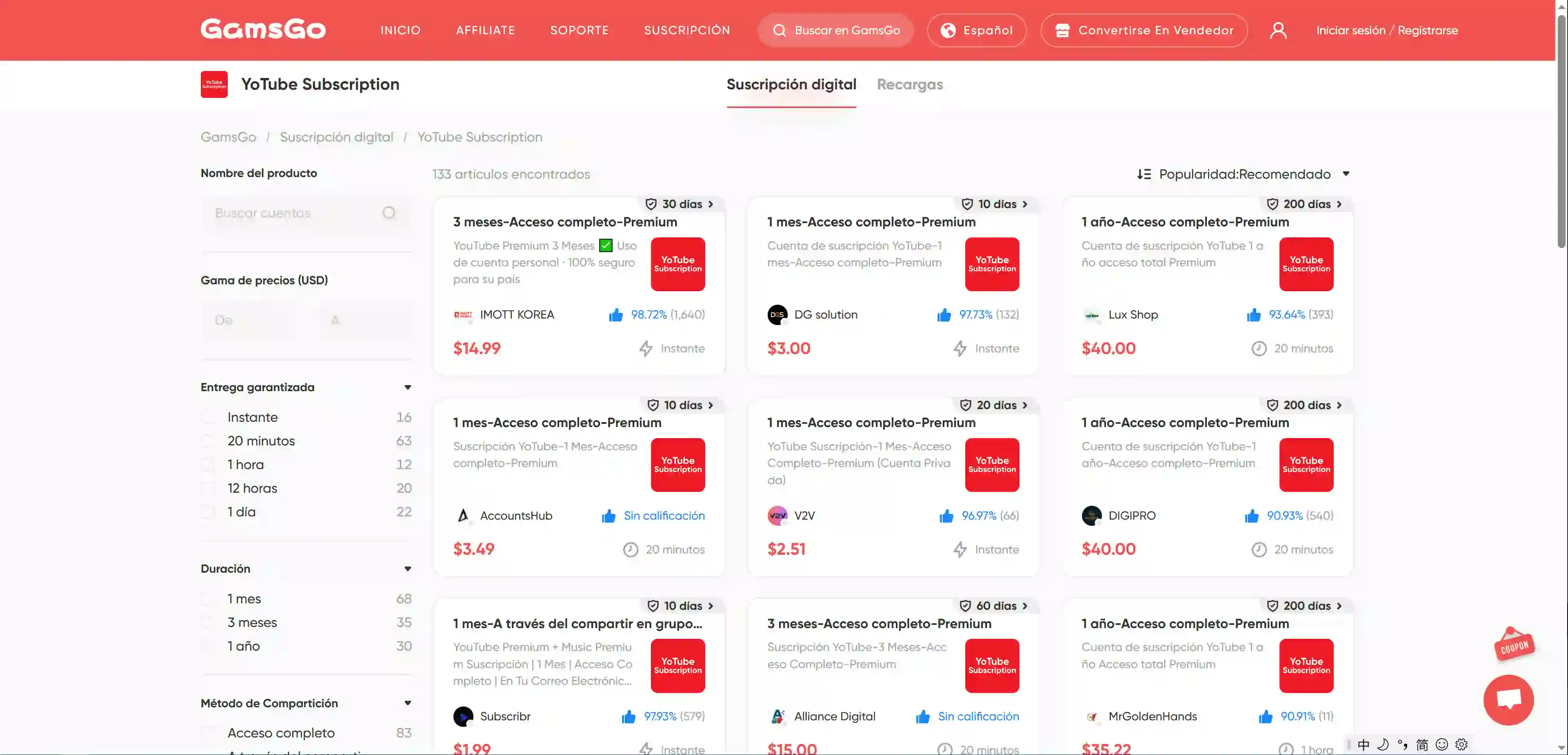 GamsGo YouTube Premium | Suscripción barata | Oficial, muy estable | Muy baja |