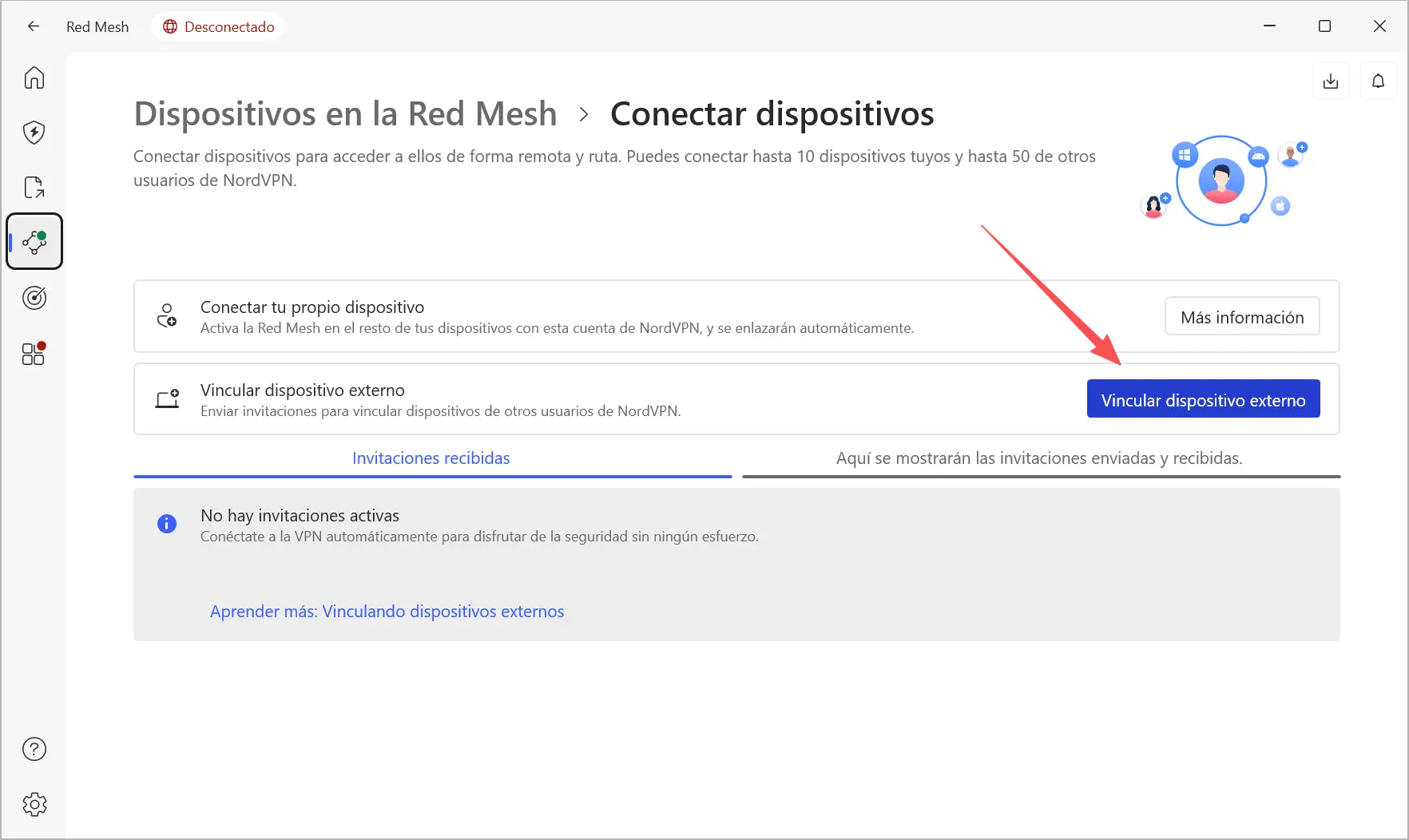 Si el otro dispositivo también te pertenece, es suficiente iniciar sesión allí con la misma cuenta de NordVPN; los dispositivos se conectarán automáticamente entre sí.