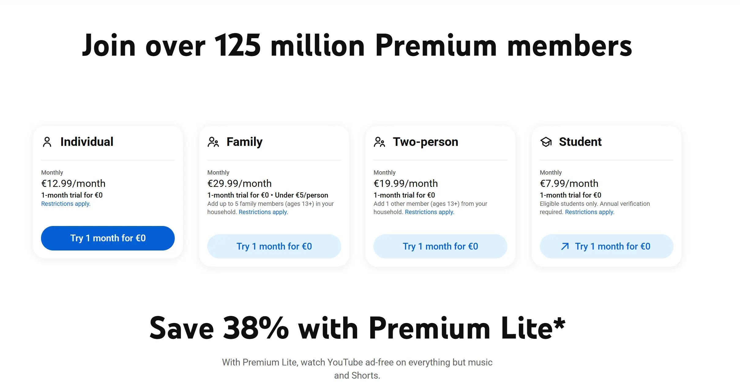 En 2026, l’abonnement YouTube Premium coûte 12,99 €/mois, avec une réduction étudiante à 7,99 €/mois. La nouvelle formule YouTube Premium Lite est proposée à 7,99 €/mois.