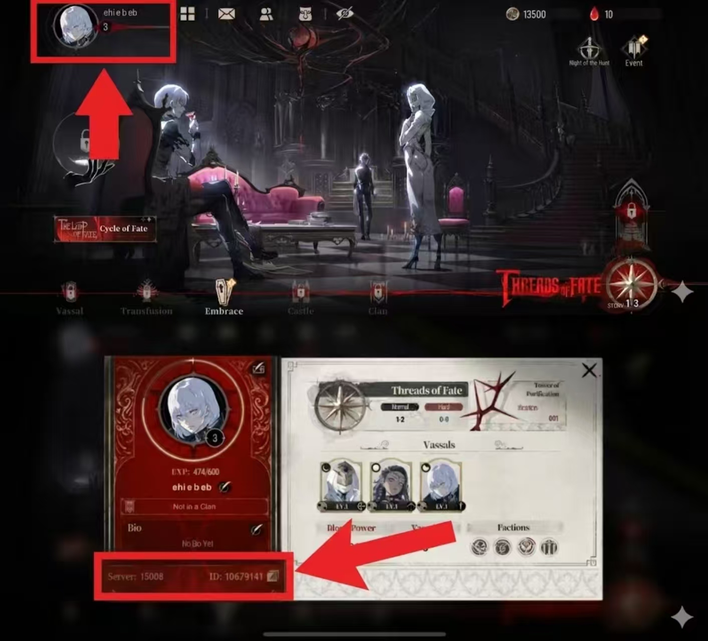 • Seu ID de servidor e UID estão no canto inferior esquerdo.